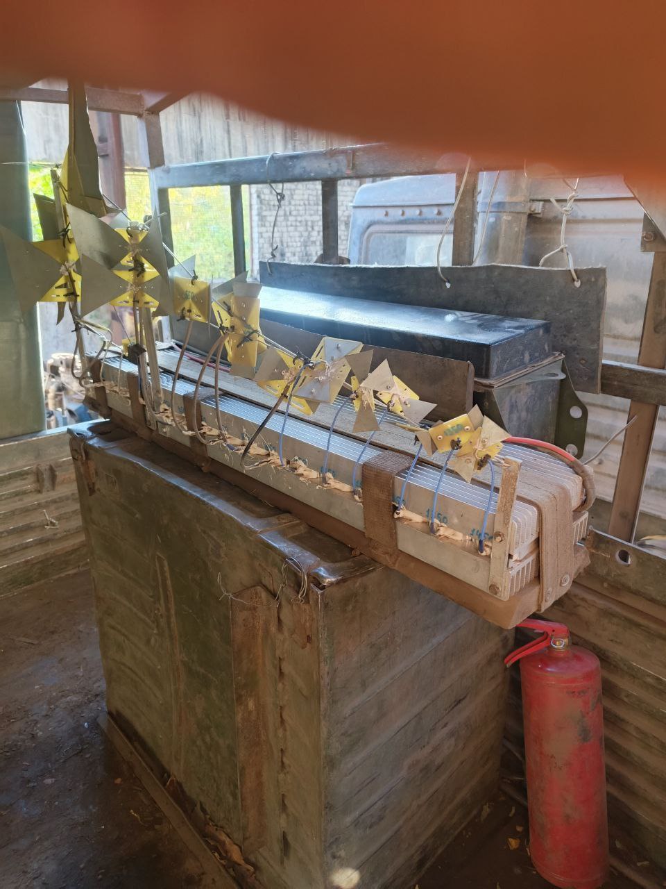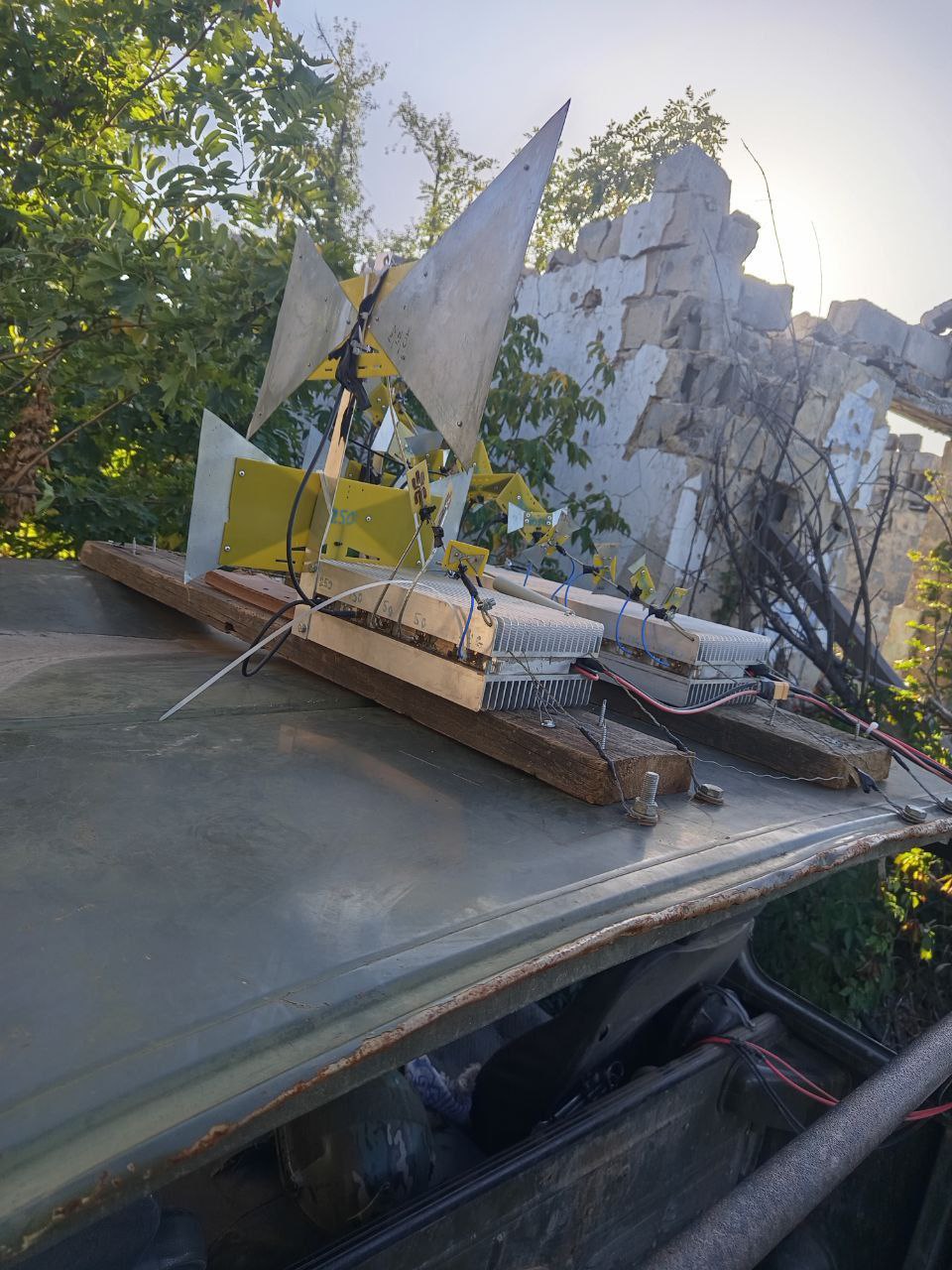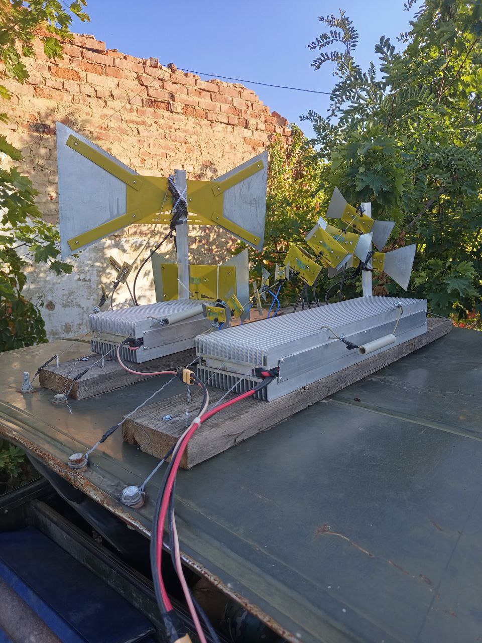 Система электронного радио подавления (далее по тексту СЭРП-17) предназначена прежде всего для применения на транспортных средствах/технике/стационарно в силу своего применения вынужденных находиться в зонах воздействия ударных беспилотных летательных аппаратов, управляемых по радиоканалам. По методу воздействия, относится к системам постановки активных радиопомех в приемный тракт канала управления БПЛА. Под воздействие помех попадают следующие диапазоны частот, перекрываемых помехой полностью: • 100-200 МГц • 200-300 МГц • 300-400 МГц • 400-500 МГц • 500-600 МГц • 600-700 МГц • 700-800 МГц • 800-900 МГц • 900-1000 МГЦ • 1000-1100 МГц • 1100-1200 МГц • 1200-1300 МГц • 1300-1400 МГц • 1400-1500 МГц • 2100-2500 МГц • 4000-5500 МГц • 5600-6000 МГц Диапазоны постановки помех выбраны по статистике наибольшего кол-ва применений ударных БПЛА, и постоянно корректируются. Выдаваемая в радиоэфир мощность в каждом диапазоне составляет не менее 50 Вт, при входном напряжении 24 В, а при максимальном входном напряжении 28 В составляет 60-70 Вт с высочайшей плотностью помехи. Антенны для СЭРП-17 изготавливаются, настраиваются и согласуется вручную на каждый применяемый диапазон с КСВ не более 1.4. Поляризация используемых широкополосных антенн горизонтальная, диаграмма направленности плоская по горизонту. В качестве источника питания могут выступать как генераторы/БП так и аккумуляторы способные обеспечить отдачу тока в 100 - 120 Ампер при напряжении 24 Вольта. СЭРП-17 рассчитана на применение в любых погодных условиях.